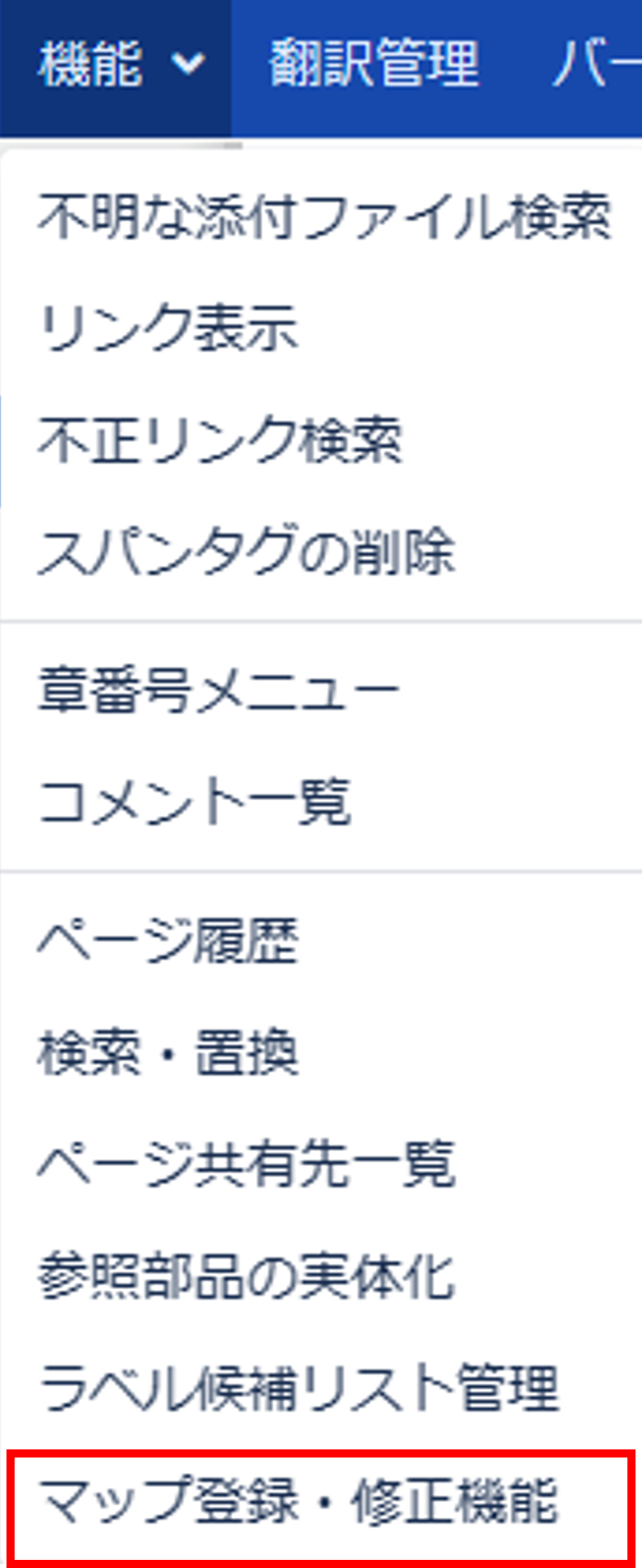 メニューバーの[機能]メニュー内の[マップ登録・修正機能]をクリックします。