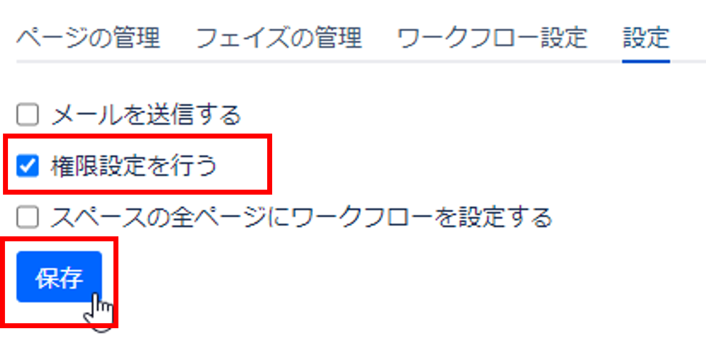 「権限設定を行う」にチェックを入れると、ページの編集権限がフェイズの担当者とスペース管理者だけに付与されます。