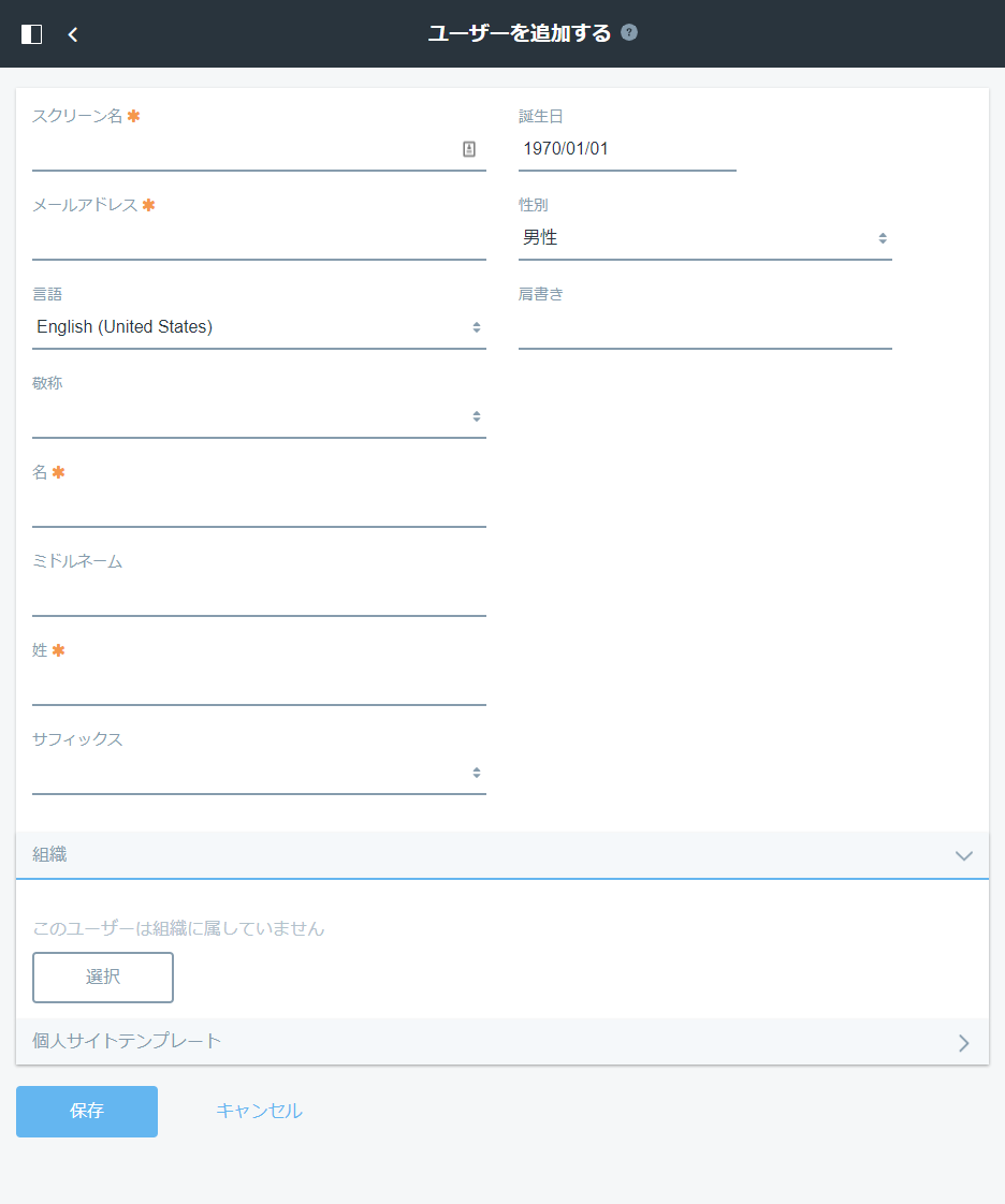 登録するユーザー情報を入力し、[保存]をクリックします。